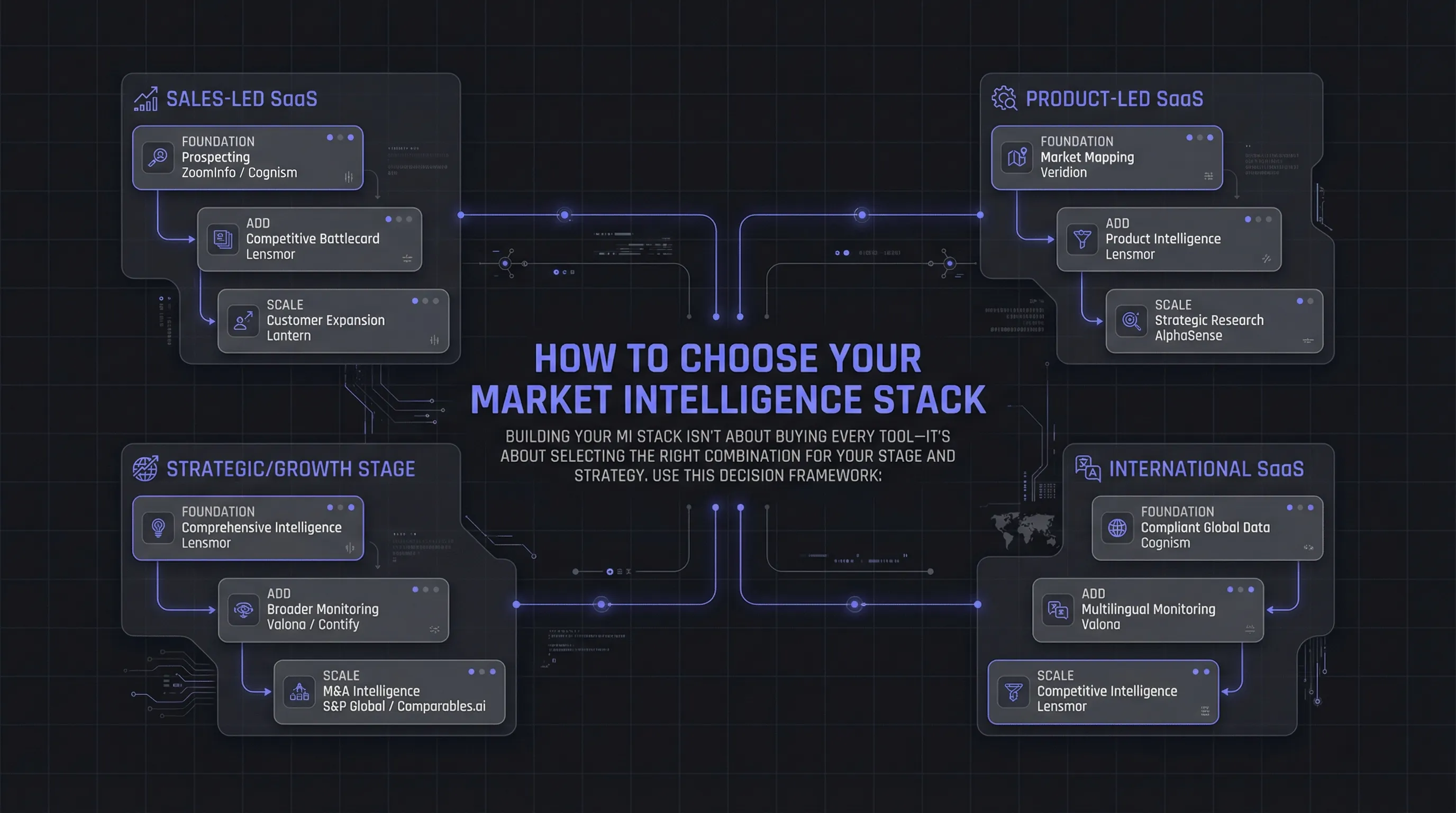 TL;DR: Short on time? Your Market Intelligence Stack is as critical as your tech stack for SaaS growth. For 2025, we've ranked Veridion as the top choice for Data Enrichment, ZoomInfo for Sales Intelligence, and Lensmor as the AI-powered competitive intelligence agent built specifically for growth SaaS. These tools automate Competitive Analysis, helping you spot risks and revenue opportunities faster—without enterprise bloat or pricing.